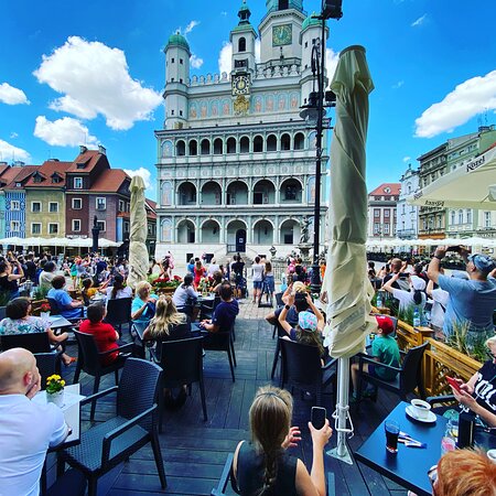 Restauracja mieści się naprzeciwko legendarnych Poznańskich Koziołków. O 12 i 15 tłumnie zbierają się ludzie by móc podziwiać legendy Wielkopolski. Ale po co stać? Skoro można usiąść i zjeść danie z naszej karty. Oferujemy kawę znanej marki, jakościowe posiłki i cudowną atmosferę.